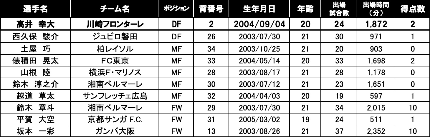 ※J1、J2、J3クラブの2種(U-18)または3種(U-15)チームに3年以上の所属経験があり、2024シーズンに向けて、また2024シーズン中にプロ契約した選手。