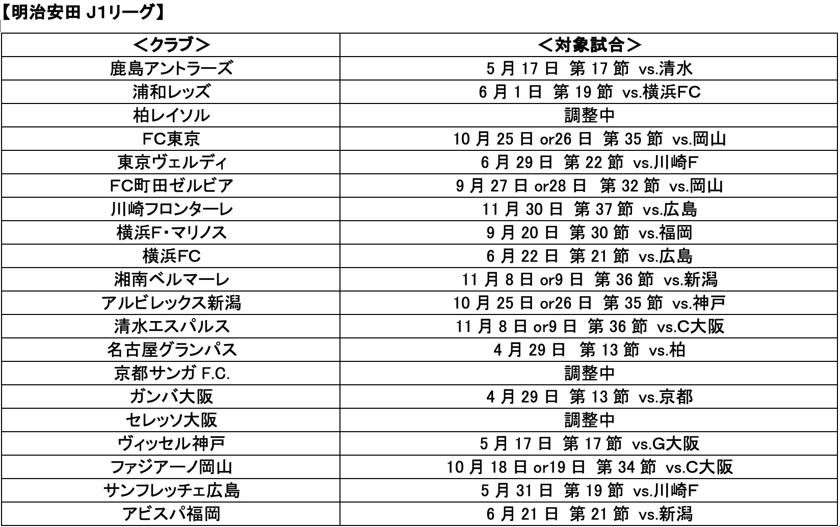 2025シーズンに開催する各Jクラブのホームゲーム(1試合ずつ)