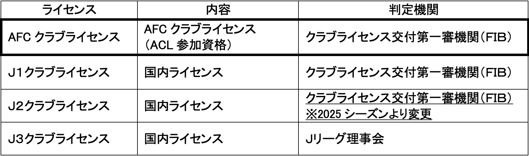 ACLのシーズン移行に伴い、2023/24シーズンよりJ1クラブライセンスとは別にAFCクラブライセンス判定を実施している。