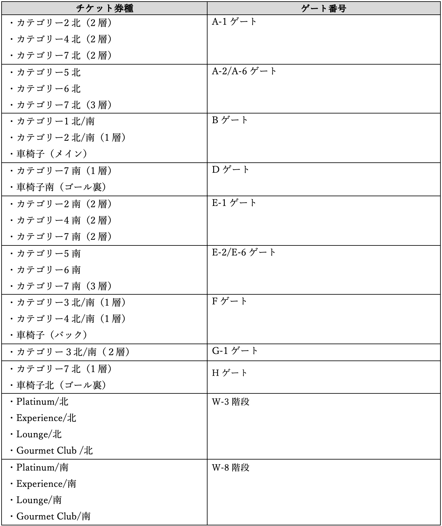 ・Hゲートを先頭に試合当日の11月1日(土)9:30より待機列整理を行います。待機列整理に遅れた方は、最後尾へお並びいただきます。