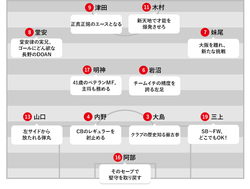 - 木村、妹尾らの加入で中盤の争いが活性化。