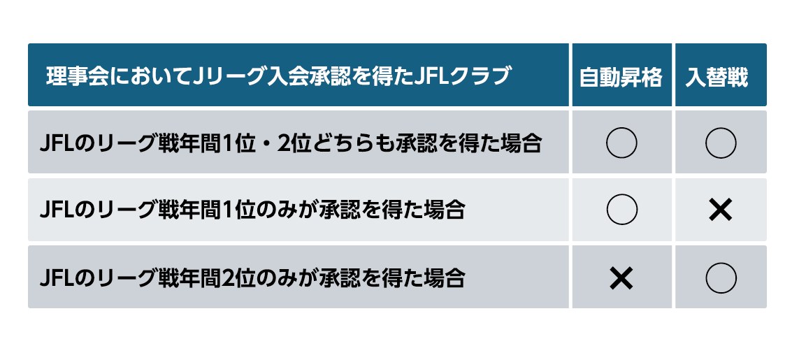 ①J3における年間順位最下位のクラブとJFL1位のクラブが自動入れ替え。