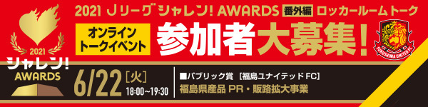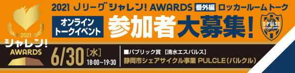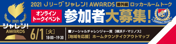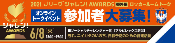 また、活動をより多くの人に知っていただけるよう、後日「2021Jリーグシャレン!アウォーズ番外編、ロッカールームトーク」と題したオンライントークイベントを開催いたします。参加者は、クラブ関係者、協働者や参加者、活動に興味のある皆様をご招待して実施いたしますので、ぜひこの機会にご参加いただき、クラブの取り組みを知ってください。