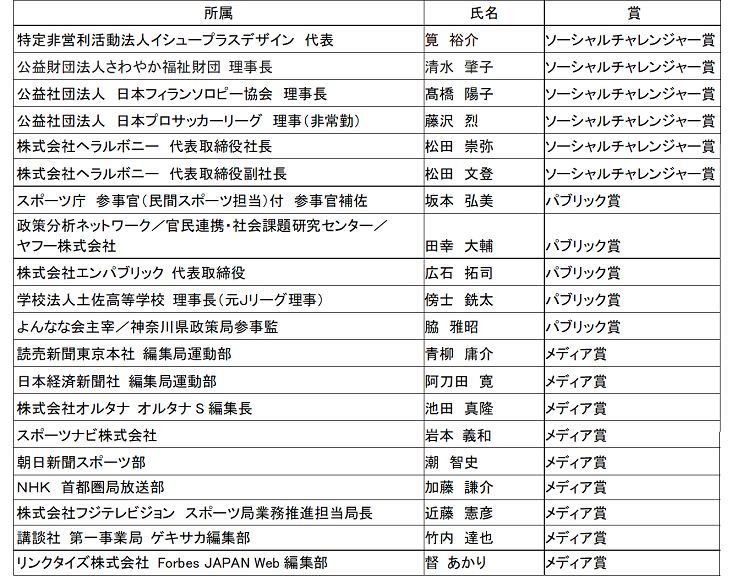 ●各賞:ソーシャルチャレンジャー賞/パブリック賞/メディア賞