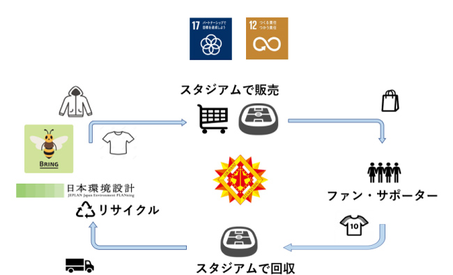 当プロジェクトに取り組む背景として、日本では年間35億着の服が破棄され、廃棄焼却処分で発生する二酸化炭素は、地球温暖化などの環境問題の悪化を加速させているという現状があります。そこで、ギラヴァンツ北九州は地元企業である日本環境設計株式会社が企画・運営するBRINGの店頭回収プロジェクトに参加し、選手が使用しなくなったユニホームや練習着、またファン・サポーターの皆さまからも衣料品を回収させていただきます。