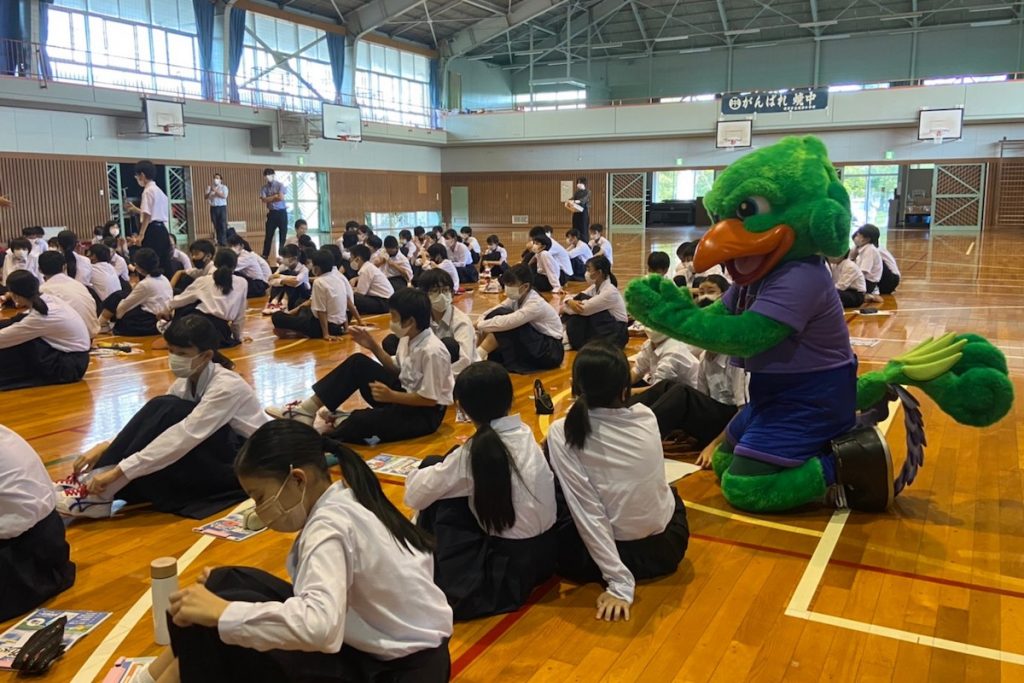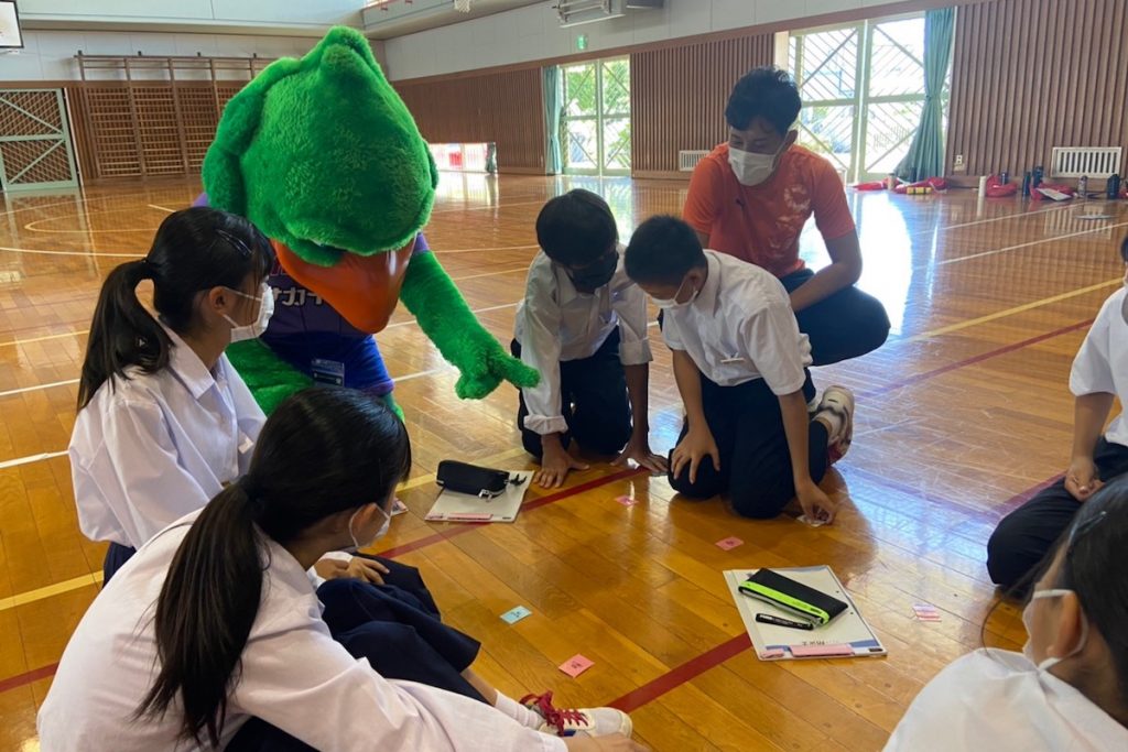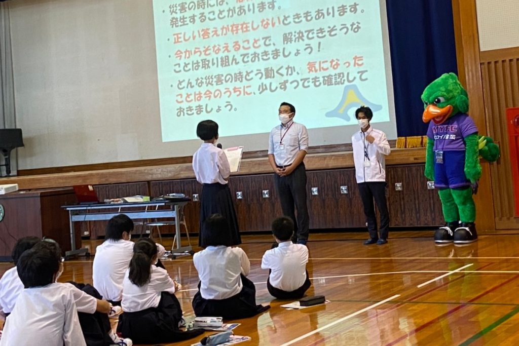 10月11日(月)、焼津市立焼津中学校でふじのくにジュニア防災士養成講座が実施され、藤枝MYFCの蹴っとばし小僧が参加しました。