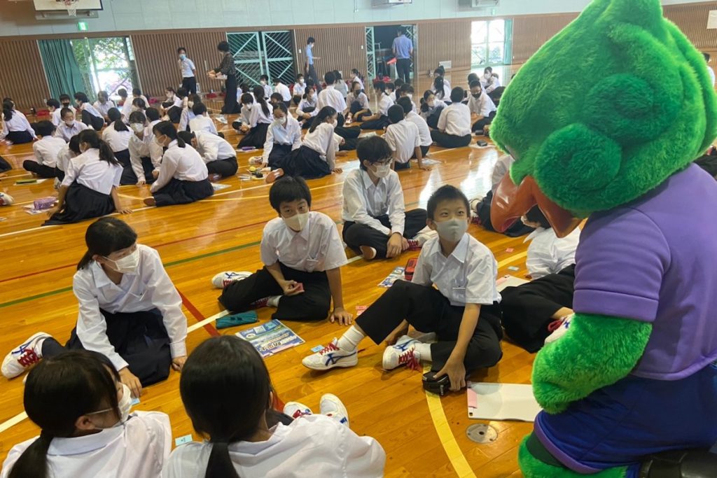 蹴っとばし小僧もグループに加わり、生徒の皆さんの意見を伺いながら学びました。いつ発生するか分からない災害ですが、事前に備えることで解決できる問題もあることを改めて認識し、準備することの重要性を学びました。