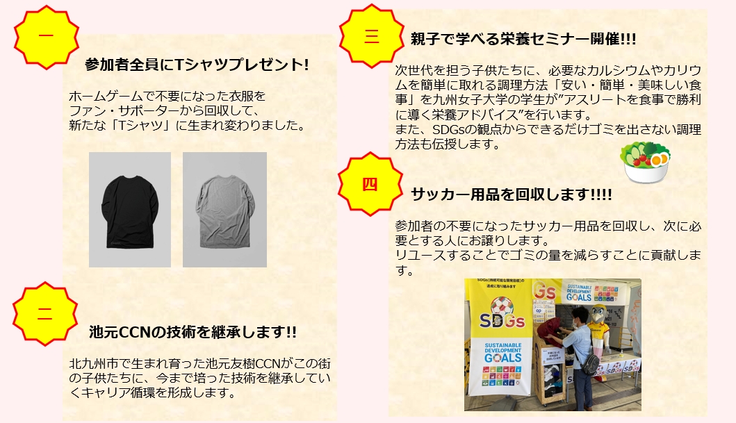 この取り組みは"ギラヴァンツ北九州"を通じて若者や子どもたちが遊び、学び、成長する場所を作り、地域の人と人がつながり、持続可能な未来のまちづくりに寄与すること、サッカーを通じてSDGsに理解を深めていただくことを目的としています。