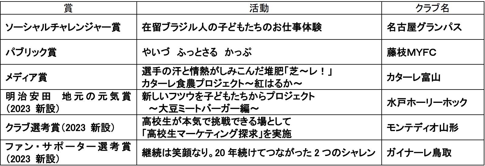Jリーグは本日、全60クラブのホームタウン・社会連携(シャレン!)活動の中から、特に社会に幅広く共有したい活動を表彰する「2023Jリーグシャレン!アウォーズ」を開催し、各賞を決定しましたのでお知らせいたします。