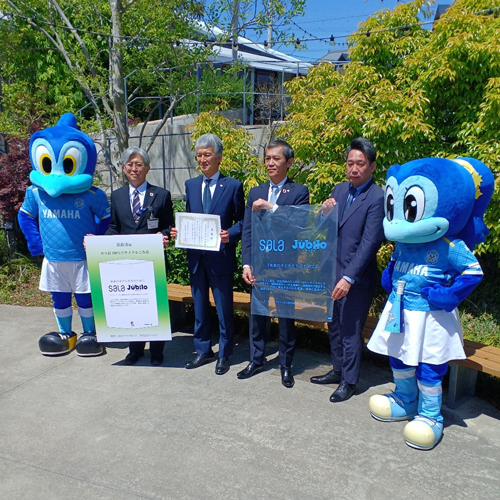 ジュビロ磐田は、オフィシャルスポンサーのサーラグループ様と協働で、端材をリサイクルして作ったごみ袋計1万700枚を、浜松・湖西の両市に寄贈しました。