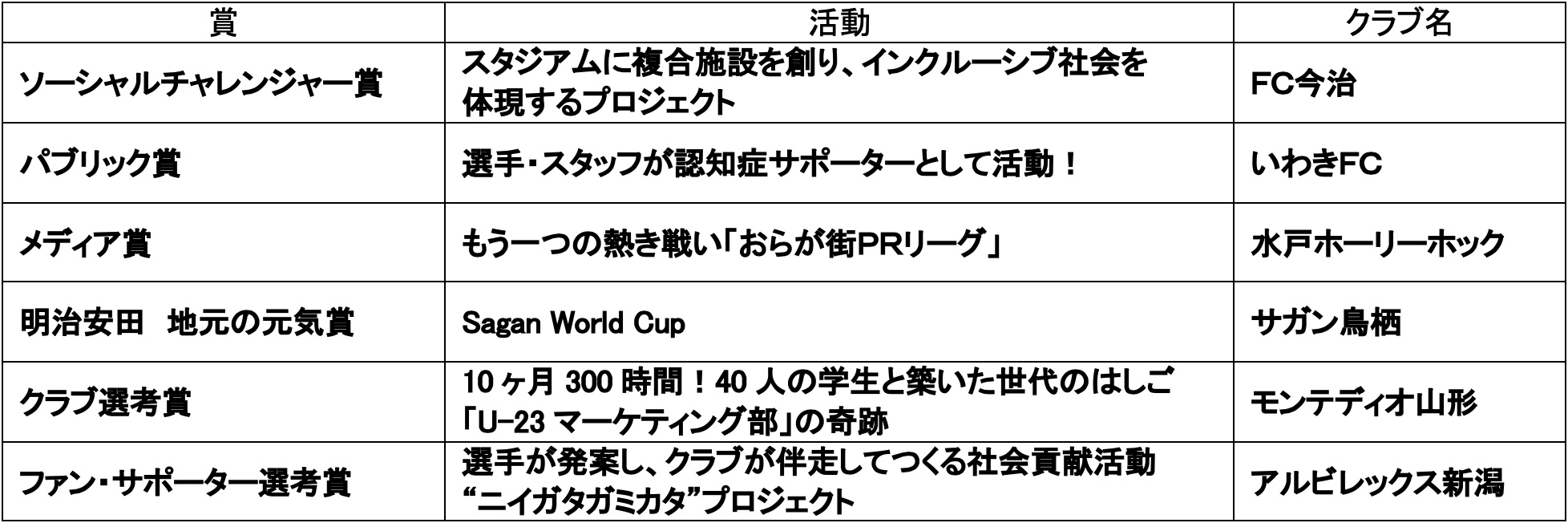 Jリーグは本日、全60クラブのホームタウン・社会連携(シャレン!)活動の中から、特に社会に幅広く共有したい活動を表彰する「2024Jリーグシャレン!アウォーズ」(後援:スポーツ庁)を開催し、各賞を決定しましたのでお知らせいたします。