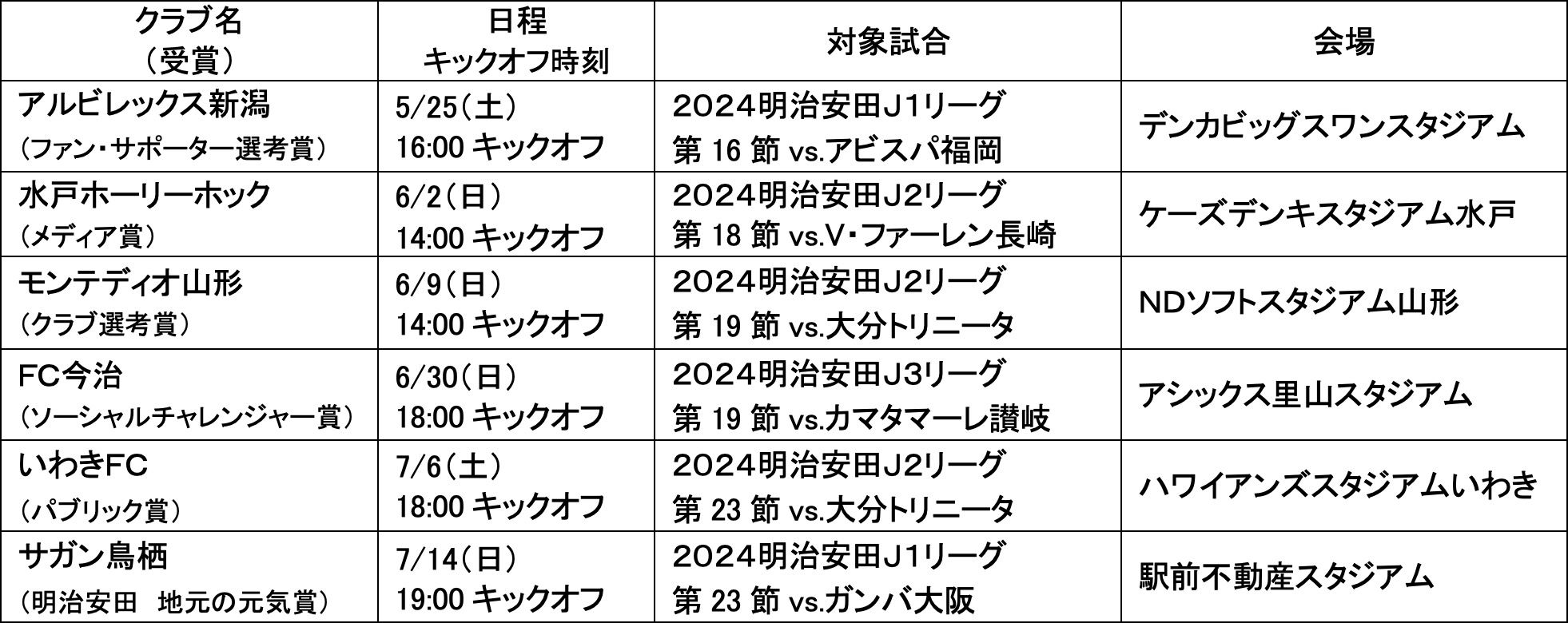 ※授賞式は、原則、試合開始前もしくはハーフタイムで実施の予定です