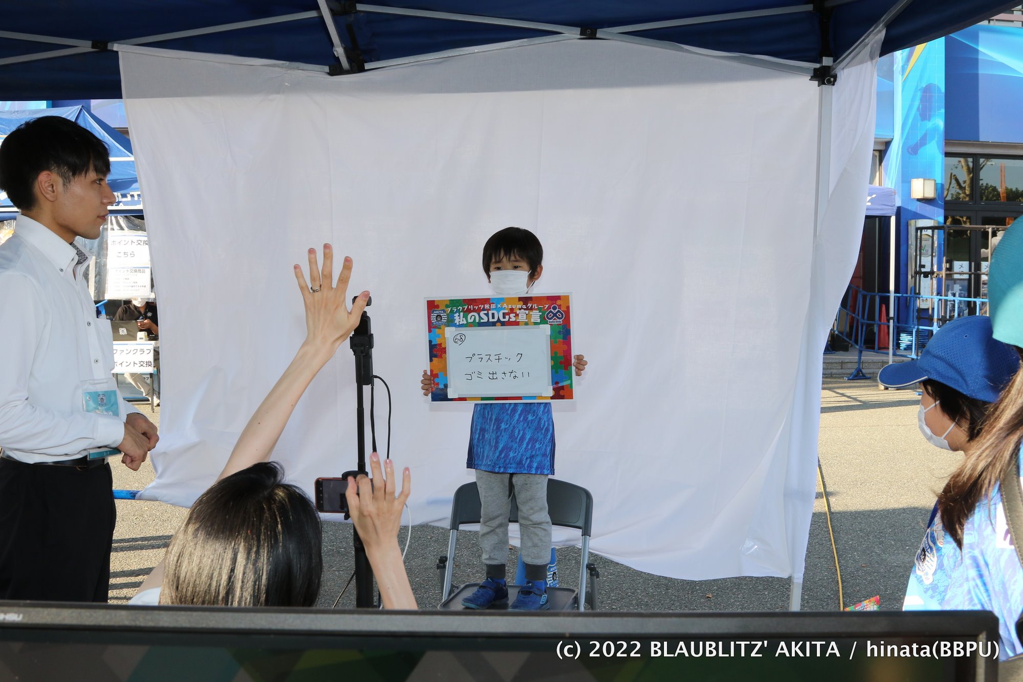 SDGsアクションパートナーである東電化工業株式会社様・東商事株式会社様と共に、ブラウブリッツ秋田の試合会場で「SDGsアクションチャレンジデー」を開催しました。SDGs及び地域社会の課題に対し、試合会場に来場されたファン・サポーターの皆さまと一緒に取り組める様々な企画を行い、SDGsにアクション(行動)する機会やSDGs活動を知っていただく機会を創出しました。 SDGsアクションパートナーの従業員と何度も打ち合わせをしながら共に創り上げた「パートナーシップ」の活動となっており、1試合で「8つのSDGsアクション」を行うことができました。