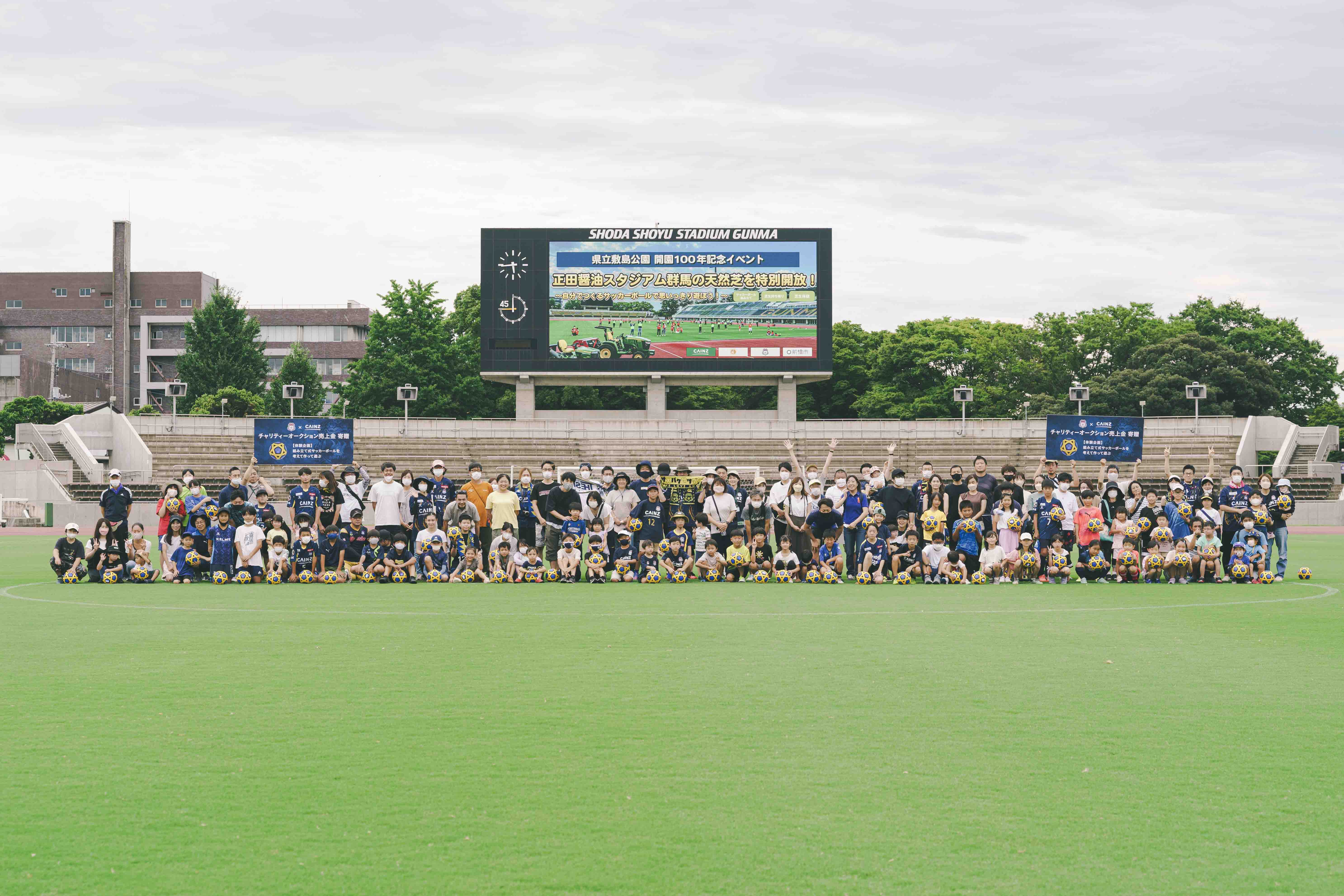 ザスパクサツ群馬では、ホームスタジアムである正田醤油スタジアム群馬の指定管理を行なっている敷島パークマネジメントJV様をはじめとする関連団体の皆様と2021年度より芝生開放を軸としたイベントを実施してまいりました。2022年度は、前橋市と株式会社カインズが加わり、より地域に密着した活動となり116名の地域住民の方々にご参加いただきました。