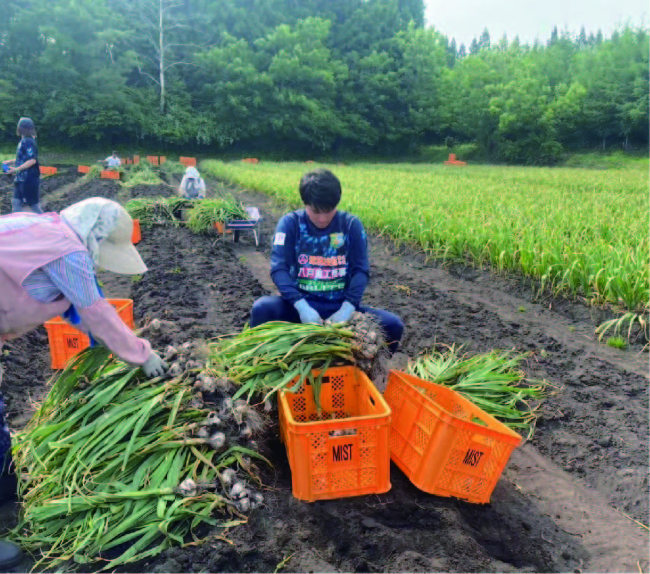 借用した農地では青森県の特産品であるにんにくの栽培を開始し、全選手・スタッフ、そして2者目の協力者である周辺の農家の方々にもご協力いただき、植え付けから収穫、農地の管理を行っています