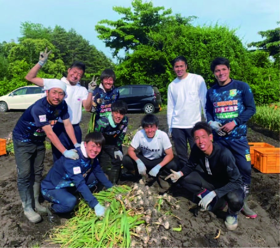 地域の農家の皆様にもご協力いただき、植え付けや収穫作業を実施。2021年からは上北農産加工株式会社様と、収穫したにんにくを活用したコラボ商品「俺たちのスタミナヴァンたれにんにくマシマシ」を開発し、地域のコンビニ、道の駅をはじめ、Jリーグ各クラブにもご協力いただき販売を実施している。