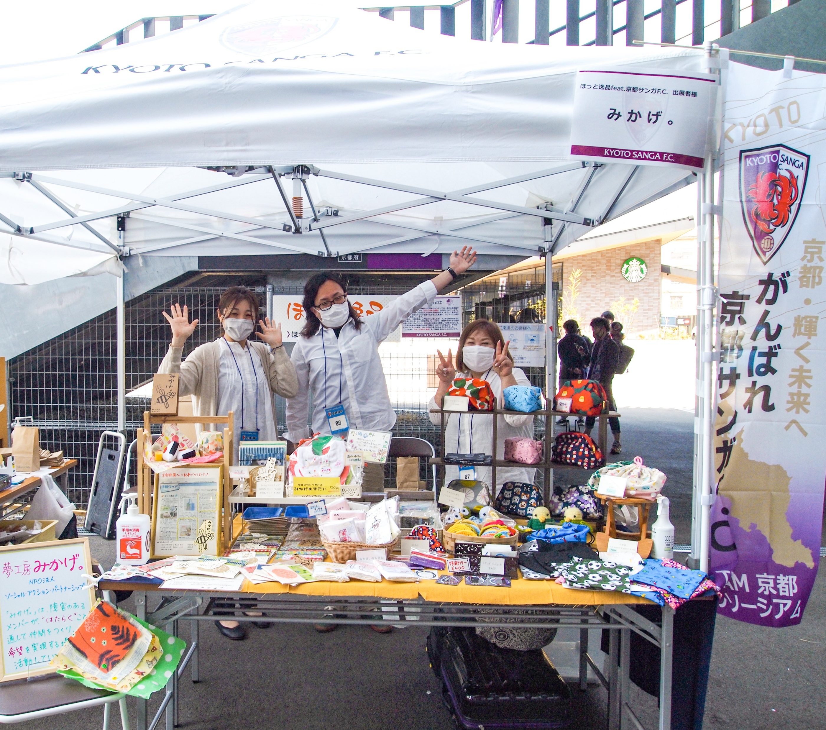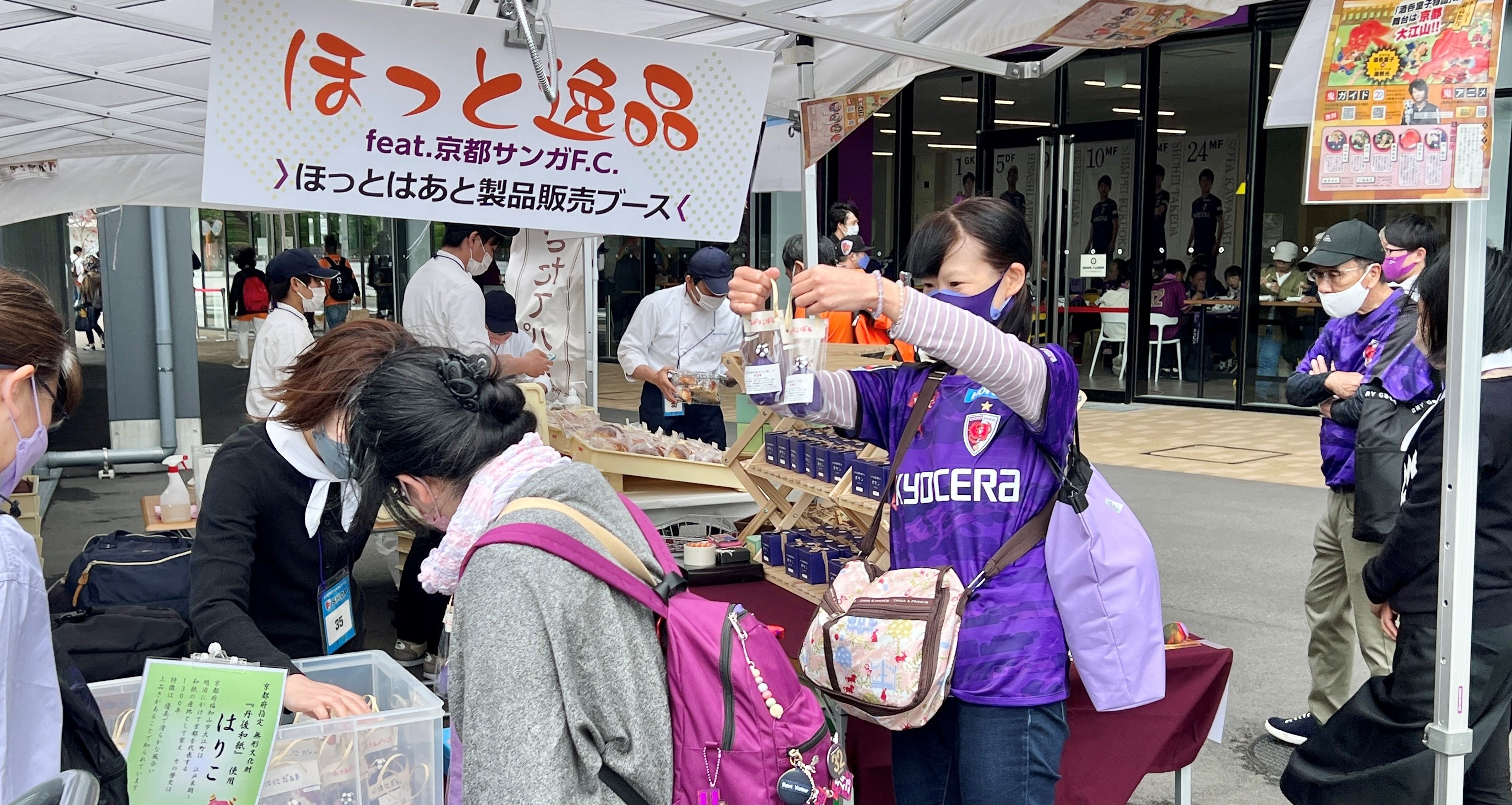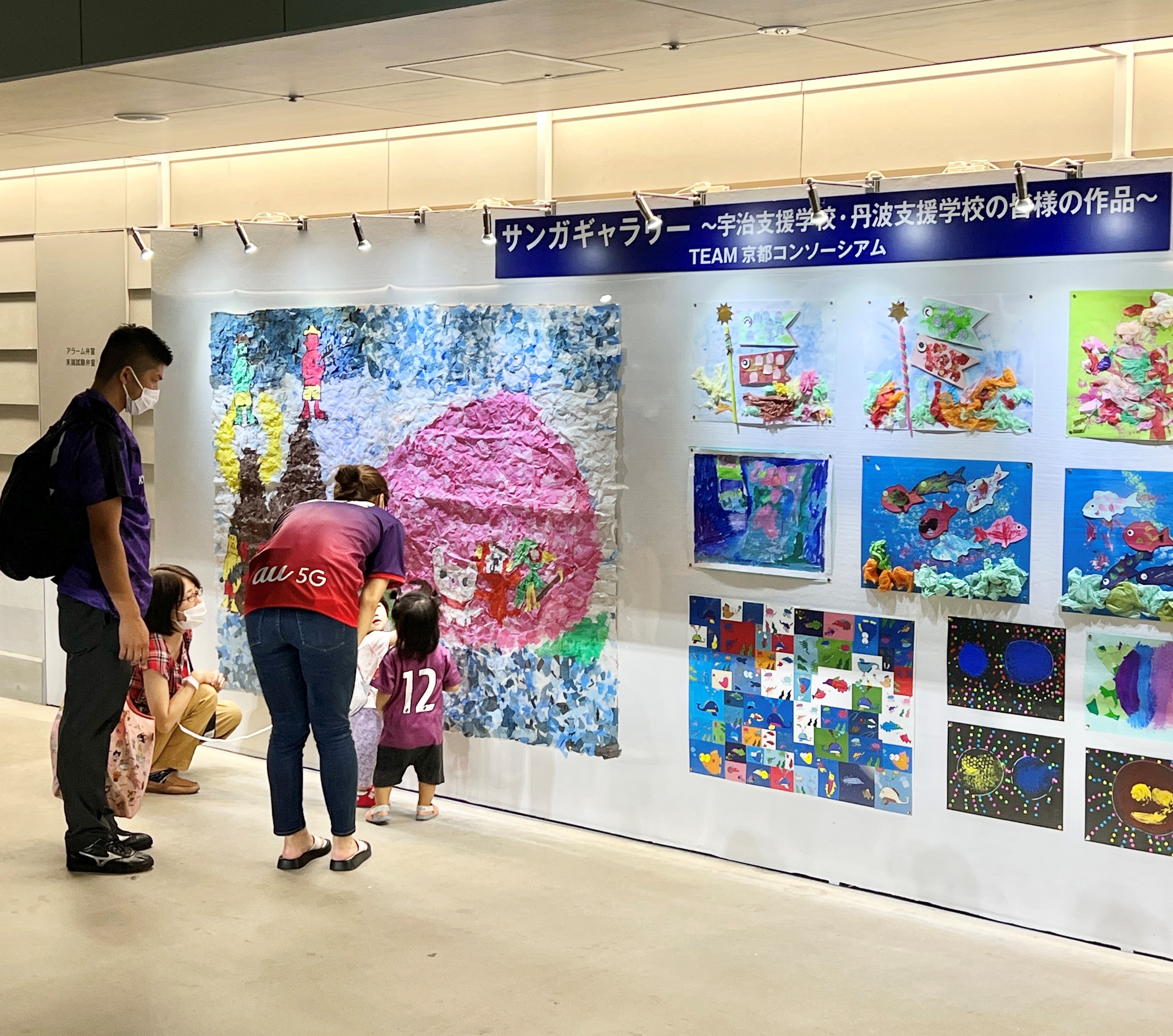 京都府内の障がい者福祉サービス事業所で作られた「ほっとはあと製品(授産製品)」をプロモーションするブースの出展、ホームゲーム運営の就労体験、特別支援学校の生徒が作成した絵画を展示する「サンガギャラリー」など障がいのある方と協働した様々な企画で来場者をおもてなししました。