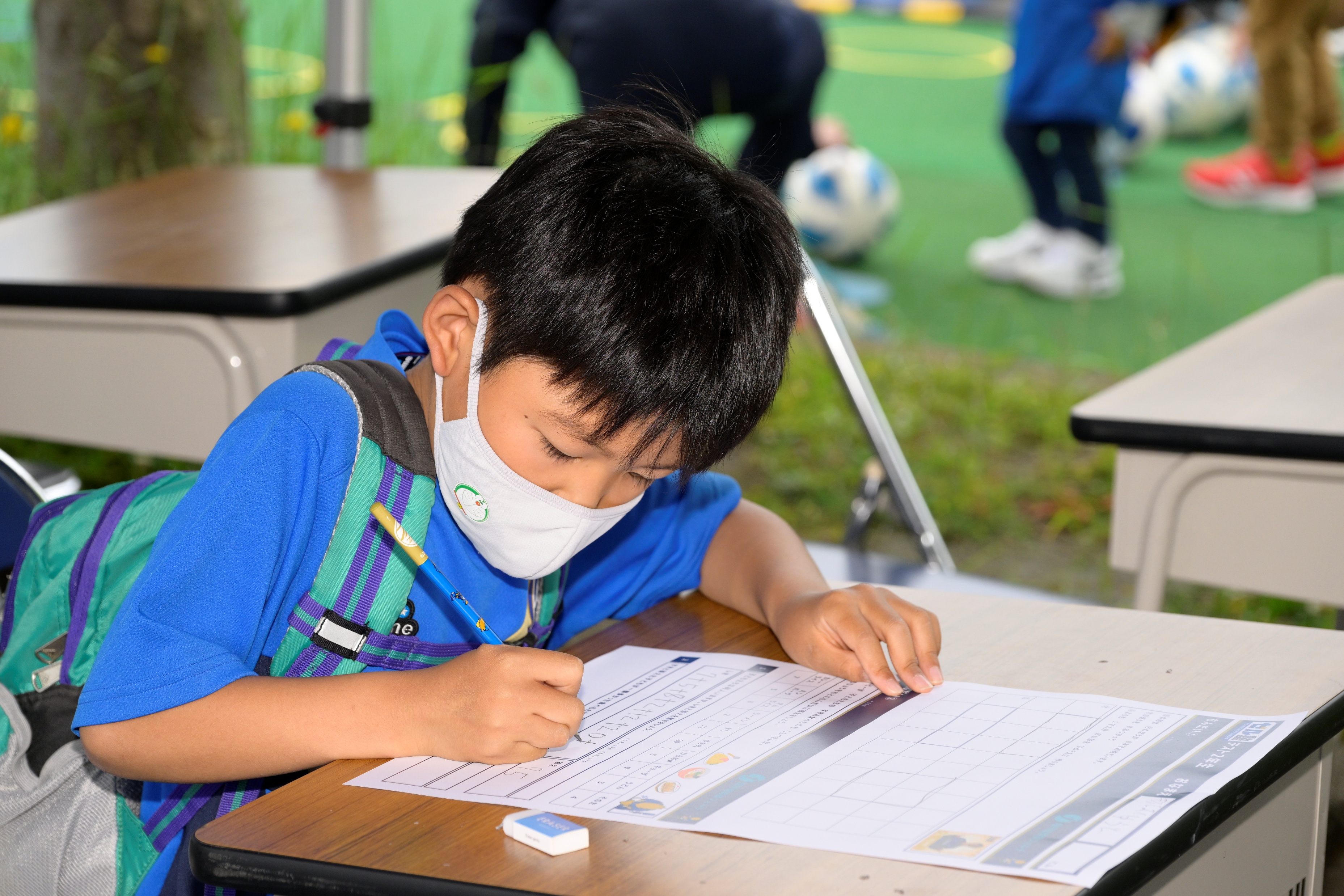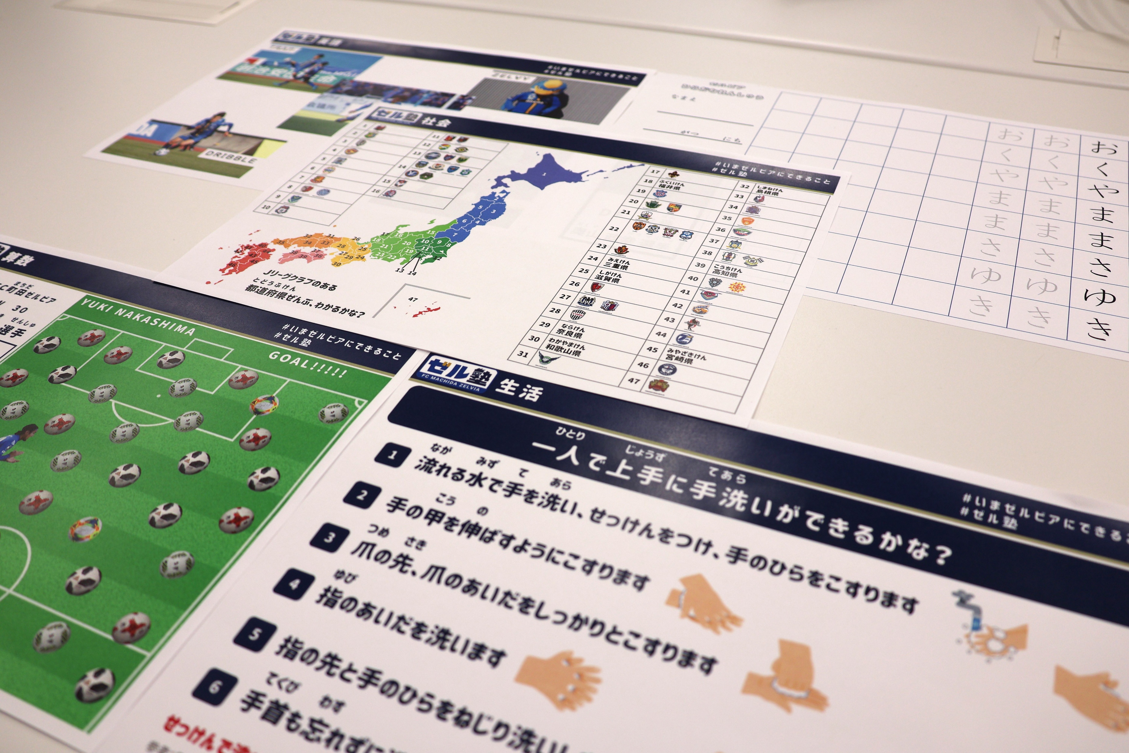緊急事態宣言により小学校が休業となり、外出自粛を余儀なくされた子どもたち。すぐに学校や学童と連絡を取ると「生活リズムが乱れはじめている」「家庭ごとに環境が異なり、学習時間や方法にバラツキが生まれている」といった声を聞いた。「いまゼルビアにできること」は何かと考え、家庭でも学習のスイッチを入れる瞬間や楽しく学習するきっかけを提供することで、学習環境づくりに貢献しようと『ゼル塾』を開講。知人から教科書を借りたりネットで検索をしたり、子どもたちが楽しめる視点を意識し、クラブ職員ごとに担当教科の教材制作を開始。制作しては皆でチェックを繰り返し配信開始から40日間連続で届け続けた。