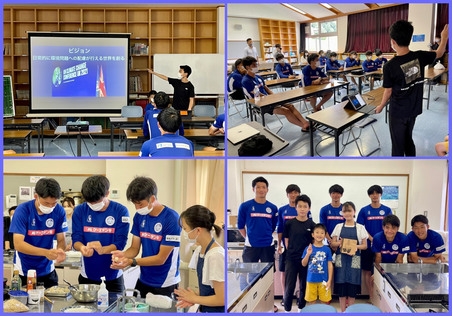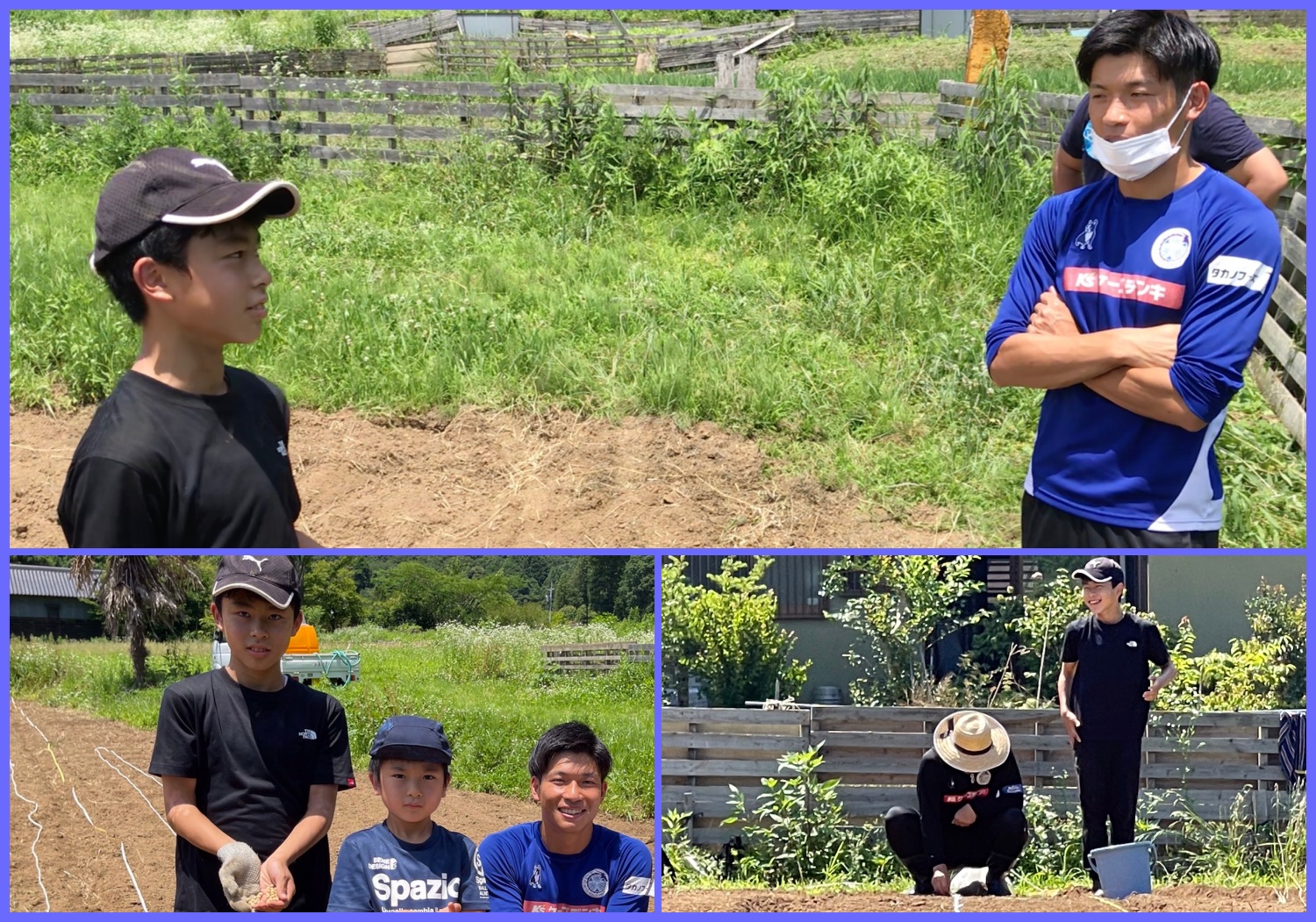 講義テーマは地球環境保全。講義に向けて何度もホーリーホックスタッフとミーティングを行い、何度も何度も資料の作り直しもしました。ホーリーホックの農場で大豆の種まきも行いました。迎えた講義当日、講義を受けた村田航一選手は「感銘を受けた」と修太くん、由梨子さんの活動のサポートをすることに。その後は大豆ミートバーガーの製造・販売サポートをいただける地域の店舗を探し、レシピ作成、試作等を重ね、ついにご協力いただける飲食店も見つかり、リーグ最終戦での販売に向けて、オンライン試食会も村田選手や山口瑠伊選手と一緒に実施。修太くんと由梨子さんは、販売時に配布するためのアンケートチラシも制作。チラシには大豆ミートを使用した時と、牛肉を使用した時に出る温室効果ガス排出量の比較など、環境についての細かな情報が記載されていました。このアンケートと大豆ミートバーガーをもとにスタジアムで地球環境保全への意識付けを働きかけていきます。スタジアムでの販売を目前に控え、今後も地球環境保全に関する取組を継続的に行なっていくことを視野に、この活動が「新しいフツウを子どもたちからプロジェクト」と命名されました。そして販売当日200個の大豆ミートバーガーは完売。用意した800枚のチラシも子どもたちだけで配り終えました。