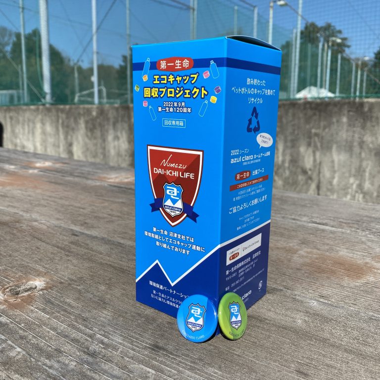 アスルクラロ沼津、第一生命保険株式会社沼津支社、株式会社サティスファクトリーの協働で、ファンやサポーターや地元の企業、学校で集めたペットボトルキャップを、スタジアムで使用するゴミ袋へとリサイクルするプロジェクトを立ち上げました。このゴミ袋は再生材を使用したもので、通常のゴミ袋よりCO2排出の削減が可能なものとなっており、地球温暖化の防止に向けた活動です。ペットボトルキャップはホームゲームを中心に集め、延べ3663名から約19万個も集めることができました。