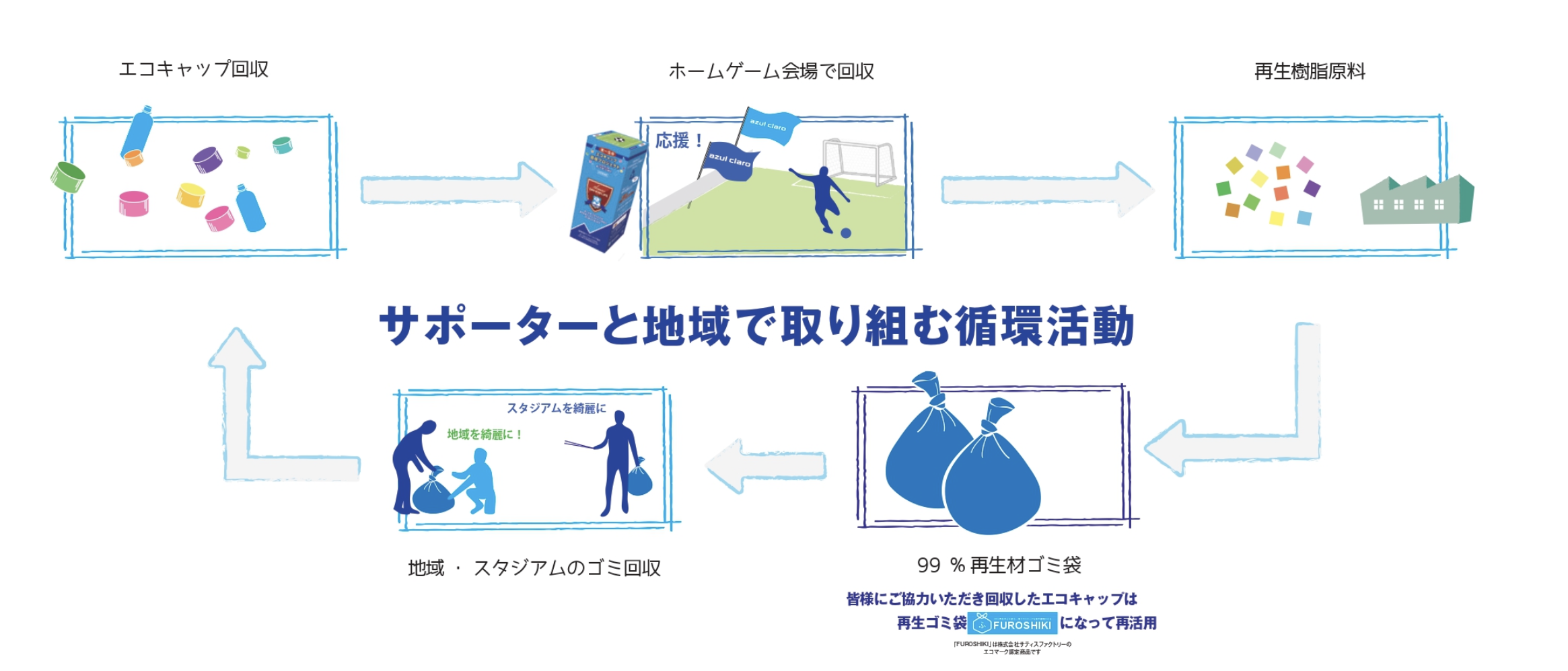 アスルクラロ沼津では2023シーズンからこのプロジェクトで集めたペットボトルキャップを原料として一部使用した「FUROSHIKI」をホームゲーム時のスタジアムで使用する予定となっており、来場者が集めたペットボトルキャップがスタジアムに帰ってくる、循環型のプロジェクトとなっております。