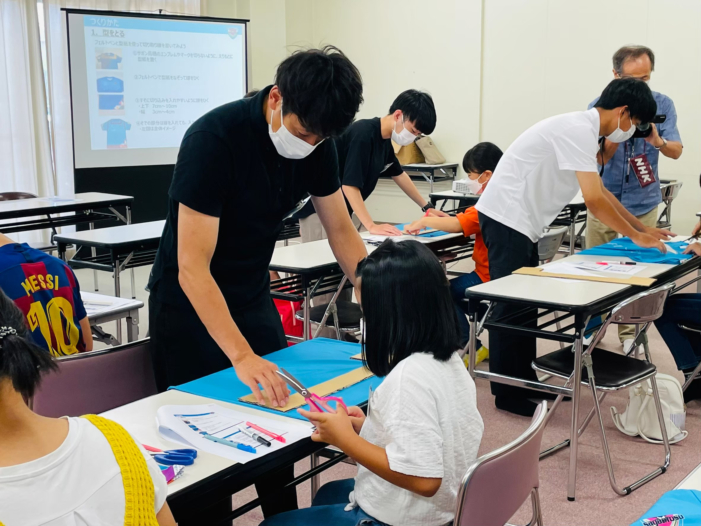 その中でサガン鳥栖が毎年、記念試合等で配布する記念ユニフォームに余剰があることに着目し新しい使い道を提案。ユニフォームをエコバッグへ様変わりさせることで、再利用、学び、コミュニティーづくり、ファン拡大など様々な効果に派生していくことも考え、次の解決課題を目的として提案。子どもでも簡単に取り組むことができるように、ハサミだけあれば制作可能なエコバッグづくりに取り組みました。