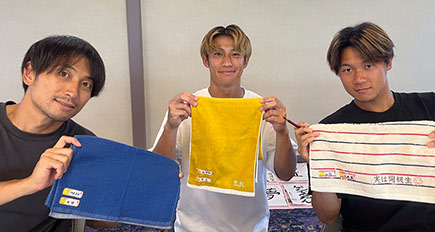 また、手縫いを施していただいたタオルを選手たちが実際に使用したことで、選手たち自身もスタジアムで声をあげて応援してくれる方々だけでなく、地域の様々な方に応援してもらっているということを毎日使用する度に感じることができたと話してくれました。