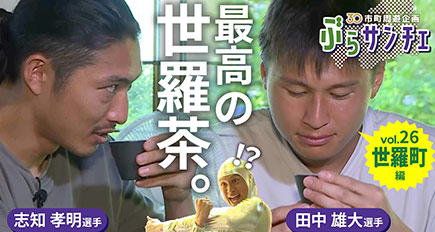 この度のぶらサンチェを通して、世羅町の魅力を再発見していただきありがとうございました。選手による福智院での白熱したお茶入れ対戦が大変印象に残っています。また、配信後はサポーターの方が選手の訪れたところをたどる、聖地巡礼をされる方もいらっしゃいました。今後もサンフレッチェ広島を応援しています。