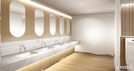 新しいトイレのコンセプトを、「神戸市にとっての自然豊かな六甲山のような、スタジアムの喧騒から離れた憩いの場」と定め、木質感のある落ち着いたデザインとしました。設備面でも最新式の温水便座や、女性用パウダールームの新設等、快適性を第一に考えました。また、節水型便器や間伐材を導入するなど、環境にも配慮したトイレとしました。その結果、来場者のみならず地域の方にも誇れるスタジアムへと生まれ変わりつつあります。
