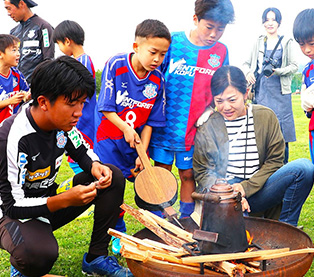 2017年2月、山中湖平野旅館民宿組合の方からクラブに1本で電話が。県内有数の観光地である「山中湖村」。6月が閑散期となり、宿泊業を営む方たちは頭を悩ませているとのことでした。その電話以降、打ち合わせを重ね、クラブと山中湖村、山中湖平野旅館民宿組合を中心に、小学3年生以下を対象とした「Vent+スクールCUP in 山中湖 U-9」を開催。村内施設「交流プラザきらら」のピッチを試合会場とし、県内外から毎年約200名の選手が参加。宿泊先を組合が斡旋し、約150名の選手・スタッフの方々が地域の旅館や民宿に宿泊。クラブが大会を主催し、地域に微力ではありながら経済効果をもたらす。閑散期に小さな可能性を見出すことが出来ました。