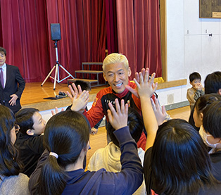 それぞれの地域において小学校を訪問し、子供たちとサッカーや質疑応答を通じてコミュニケーションを図りました。
