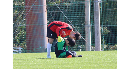 2020年からジュビロ磐田に協力をいただき、知的障がいのある子どもたちのためのサッカー大会を開催しています。普段プレーすることの少ない芝生のピッチで練習や試合ができ、笑顔で楽しくサッカーをする姿が多く見られています。また、他校の生徒や運営をしてくださる審判・高校生と交流ができる貴重な場です。