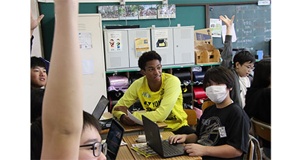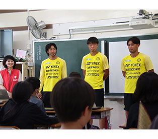 選手たちは児童とともに真剣に課題を考え、グループワークでの意見交換時にも児童に積極的に声をかけるなどコミュニケーションを取りながら、ともに学習をしていました。