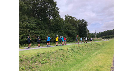 今回の活動では、長野県スキー連盟クロスカントリースキー部の中学生選手46名と、AC長野パルセイロU-13の選手19名が参加。