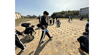 2024年しばふる(2017年開始)で生産した芝生を活用して約1.3ヘクタールのグラウンドをユース生をはじめクラブスタッフで芝生化しました。これから夜間でも利用できるように照明も設置し、3階建て延べ約3千平方メートルの校舎は1階部分をアカデミー組織の寮や交流試合に訪れた県内外チームの簡易宿泊所に改修予定です。2025年4月にユース生が入寮し、アカデミー組織で同施設の芝生維持管理もしていきます。