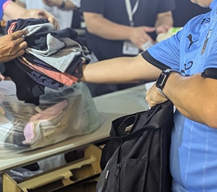 観戦に訪れた来場者が自宅で使わなくなった服を持ち寄り、合計1,520kgの衣類が集まった。これは、Tシャツ約7,600枚分に相当する量であり、一人ひとりの小さな行動が確かな成果へとつながった。