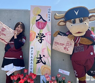 ヴィッセル神戸は、神戸市内の小学新1年生を対象にレッスンバッグをプレゼントしています。2025年度は171校、約10,400名に贈呈し、クラブ創設30周年の節目に累計贈呈数が10万個に達しました。