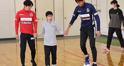 高知ユナイテッドSCは、高知市と連携し、高知県立盲学校にて、視覚障がいをもった子どもたちを対象に、「ふれあいサッカー体験教室」を開催しました。