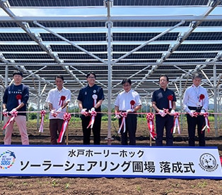 そこで水戸ホーリーホックでは、耕作放棄地を農地として再生させ、その農地の上にソーラーパネルを設置して太陽光発電を行うという「ソーラーシェアリング」を活用したGXプロジェクトをスタートさせました。