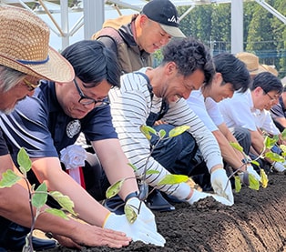 実際の農作業は、JA有機農業研究会の方々にご指導いただきながら、地域の農家の方々もご協力いただいており、選手やスタッフも足を運んで作業しており、圃場での新しいコミュニティも生まれています。