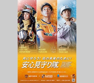 長野市消防局は、AC長野パルセイロ様及び長野都市ガス様と協働で、住宅防火対策の啓発用ポスター等の作成や、火災予防の啓発活動を行いました。地域から愛されるクラブの協力をいただけたことで、今までにない形で普及活動が行えたと感じています。今後も積極的に火災予防の普及に取り組んで参ります。