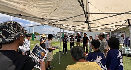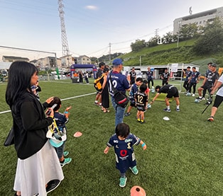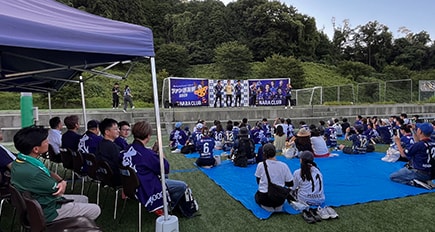 ファン200人、地元住民ら400人が来場した大規模イベントの開催には、カレー販売や会場誘導、設営等運営スタッフとして共に汗を流してくださった「イーストヒルズ勢野自治会」の皆様や、役場のサポートが強力な一助となって実現に至りました。地域と繋がるイベントとして、住民の方の運営参加が不可欠で、選手、ファン、町民が交流する姿はクラブが地域の一員として受け入れられたと感じるひと時でした。