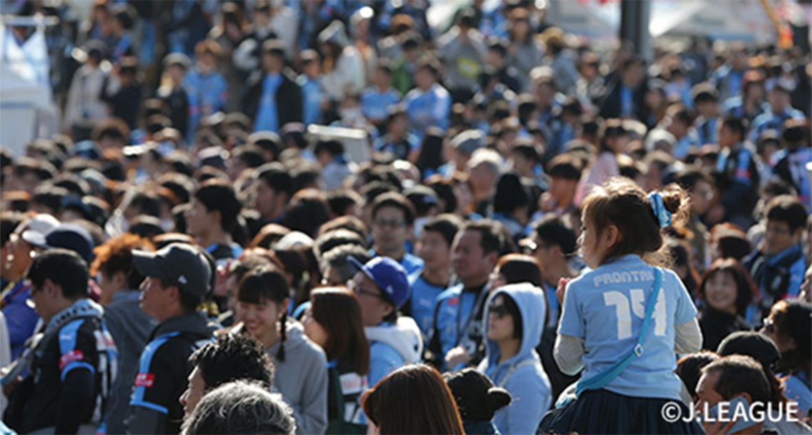 「2001年が転換期だったんだ。J1にあがって、J2にすぐ落ちて。観客が半分近くになってしまって(※)。これじゃダメだって。事業本部と強化本部で一緒に話し合った結論が、勝っても負けてもお客さんが来るようにしないとダメだね、ってことだった。そこからはいろんなことを仕掛けてきた。天野が来て、憲剛も入って、憲剛がモデルになって、今は積極的に出るのが当たり前というか、それに続く選手が出てきた。とにかく楽しんで帰ってもらうこと、そこに集中した。うちの選手たちは練習後も30~40分かけてサインする。しっかりやってくれているなと思う」