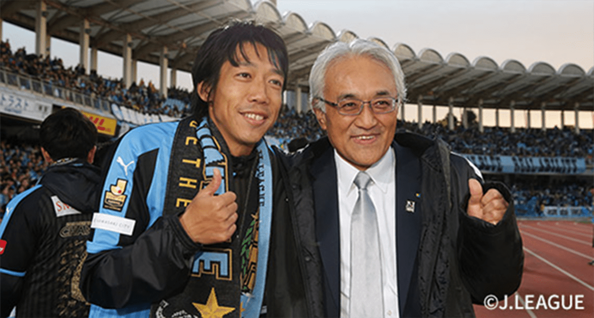 1人は庄子春男さん。長年、川崎フロンターレのGMを務めてきた連覇の功労者。