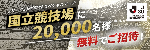 国立競技場で開催される、2月8日(土)ヴィッセル神戸vsサンフレッチェ広島、2月16日(日)東京ヴェルディvs清水エスパルスにおいて、20,000名様(各試合10,000名様ずつ)を無料でご招待します。この機会に是非、スタジアムにお越しください。応募はこちらのページから!
