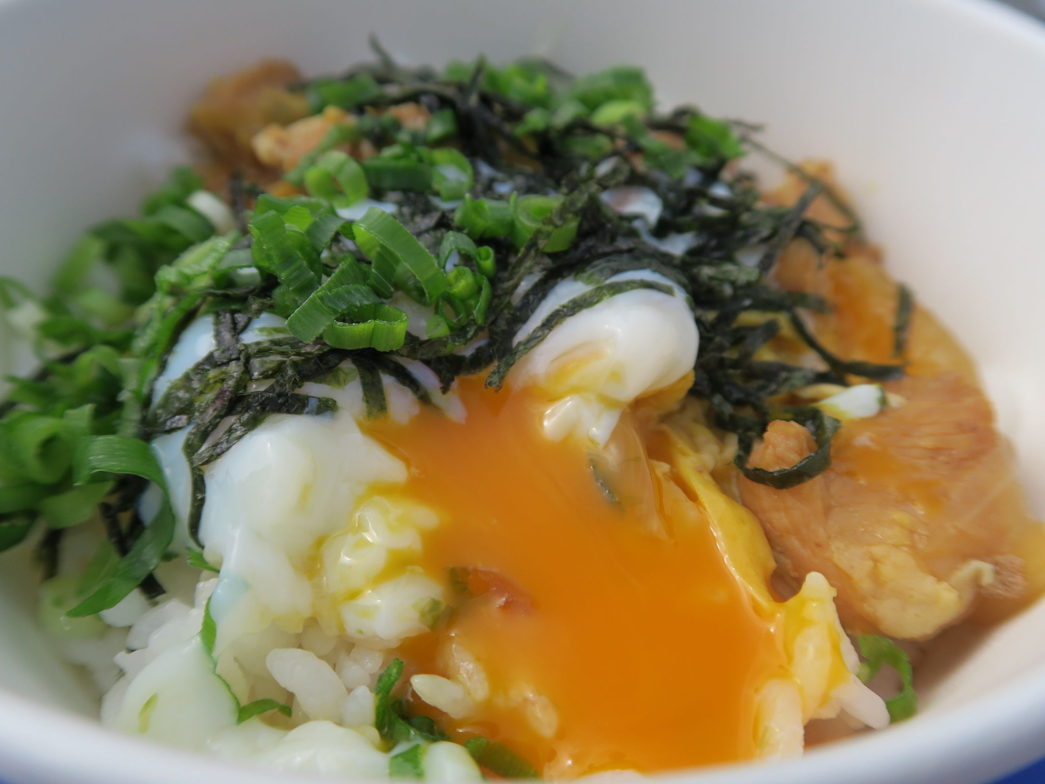 濃いめの出汁で作った親子丼に、さらに温玉をオンするという、濃厚ダブルな美味しさ。