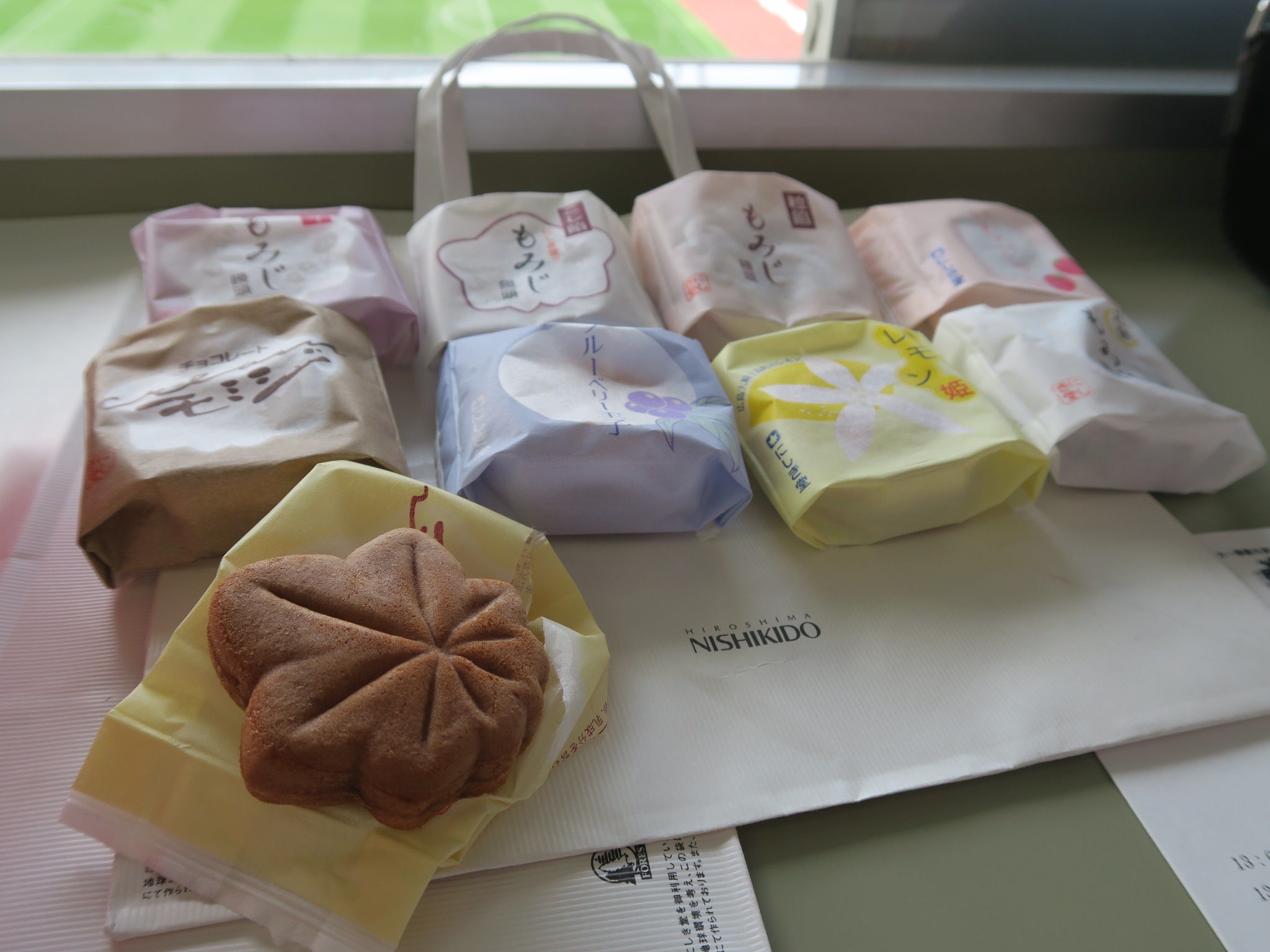 おやつには、広島ならではの銘菓、にしき堂のチーズもみじまんじゅうなどつまみつつ…