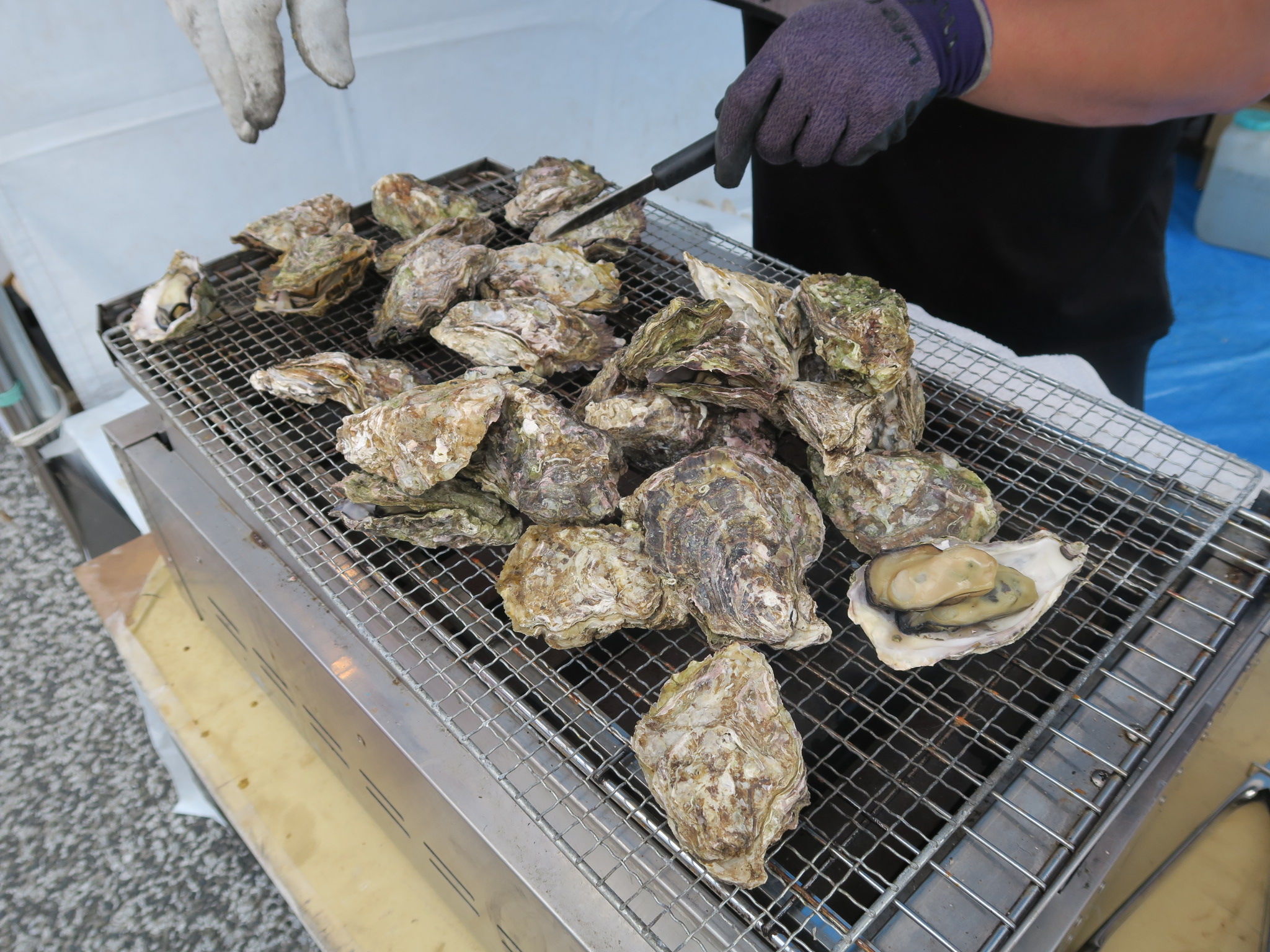 というわけで、まずは広島らしい焼牡蠣から攻めてみると、見るからにぷりっぷり!
