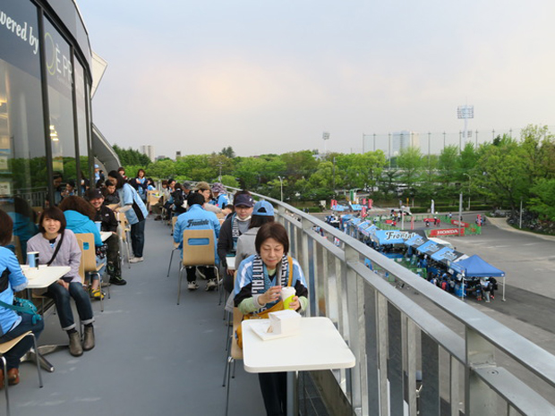 スタジアム内のグルメも探索してみると、外を一望できるオシャレな野外カフェも発見。