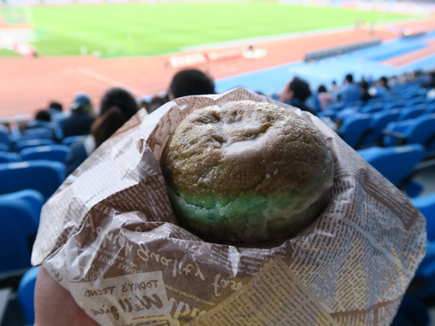 スタジアム内のスイーツどころで購入したパフェは、席に持ち込んで観戦のおともに。